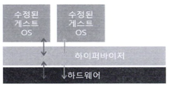 - 하드웨어를 완전히 가상화하지 않는 방식